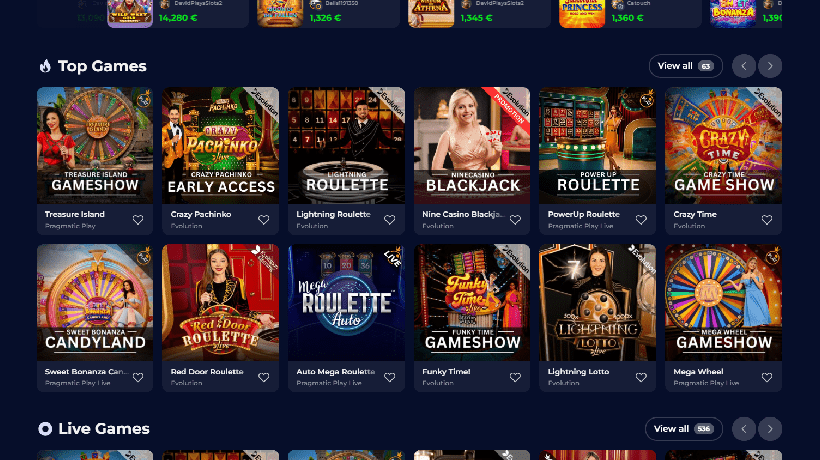 Spielen Sie Ihre Lieblingsspiele im Casino Nine von erstklassigen Entwicklern wie Yggdrasil, Pragmatic Play, Red Tiger, NetEnt, Evolution, Thunderkick, ELK Studios und BetSoft. Neben Booongo, Spinomenal, NoLimitCity, Belatra, Playson, Platipus, TrueLab, Habanero, Amatic, GameArt, Bgaming und anderen bekannten Marken führen sie auch Produkte von unbekannteren, aber interessanten Anbietern.