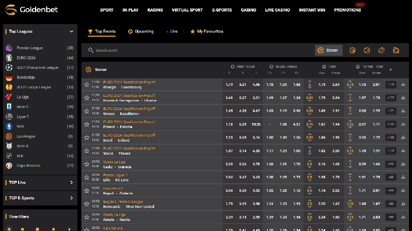 GoldenBet's sportsbook features markets on hundreds of events across more than 20 sports, including football, basketball, tennis, boxing, and eSports like Counter-Strike: Global Offensive, League of Legends, and Dota 2. Users can place bets both before and during matches, providing a dynamic and engaging sports betting experience.