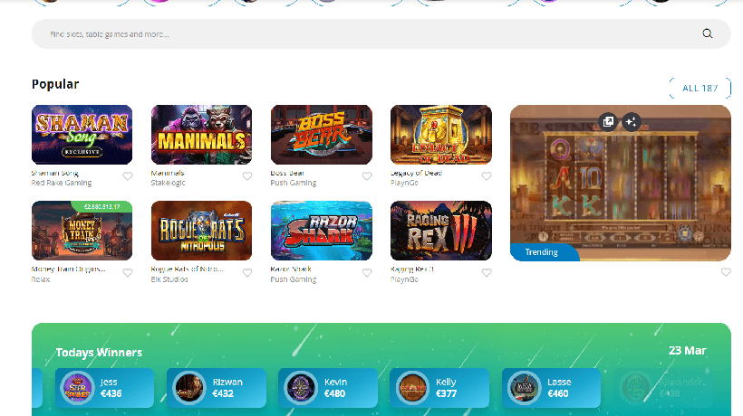 The casino is proud to provide games from 80 different software developers, including well-known names like NetEnt, Evolution, Rabcat, Red Tiger, 12, NYX, Microgaming, Merkur, Pragmatic Play, Play'nGO, Gameburger, SG, Hacksaw Gaming, Print Studios, Push Gaming, Leander, Pear Fiction, Foxium, Nolimit, All41Studios, Blueprint, BTG, Relax, IronDog, JFTW, Thundekick, Spinplay, Slingshot, Fantasma, Playson, Golden Rock Studios, Inspired, Gamevy, GreenTube, IGT, Oryx, Neon Valley, WMS, Every service provider has their own unique licence that they operate under. Consequently, you may not be able to access the games of certain providers from your location.